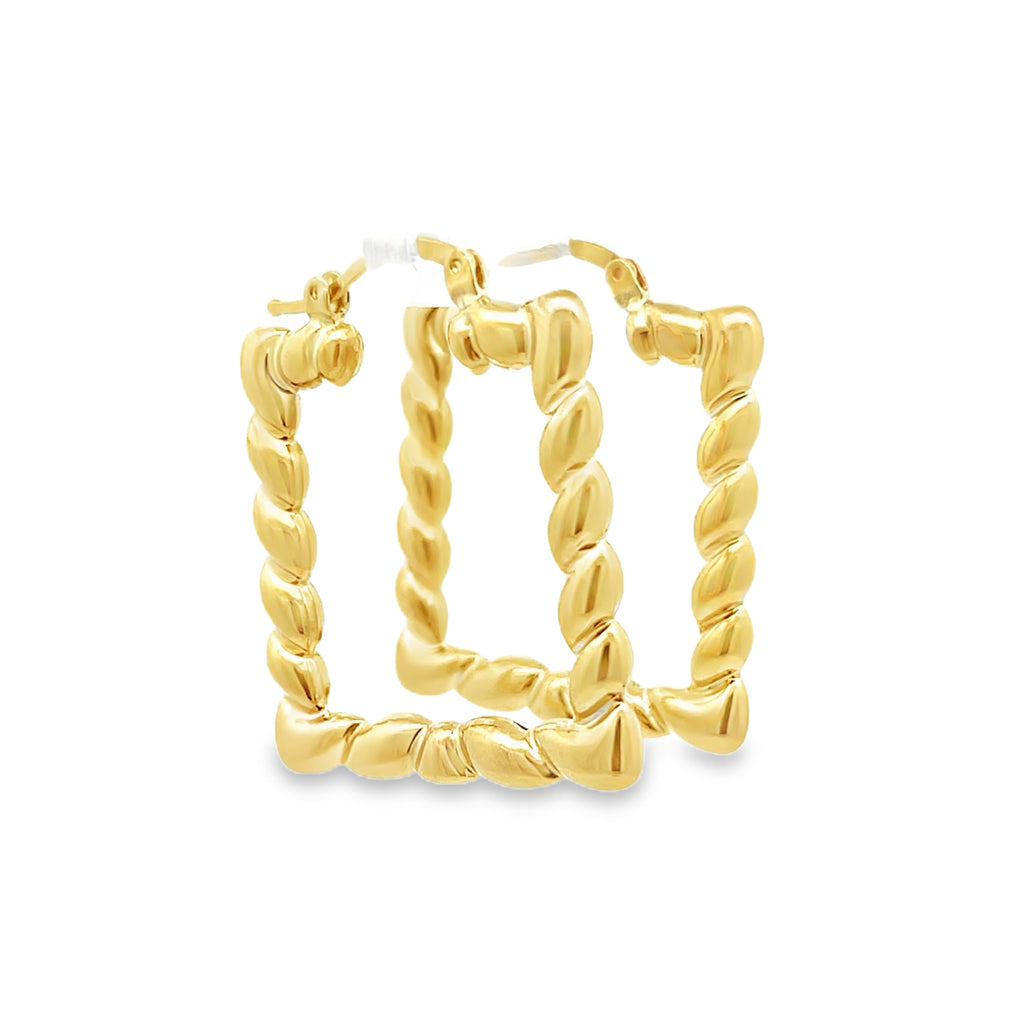 Add some edge to your jewelry collection with our Square Rope Gold Hoops! These unique hoops are the perfect balance of classic and trendy. Made with a square rope design, they elevate any outfit.