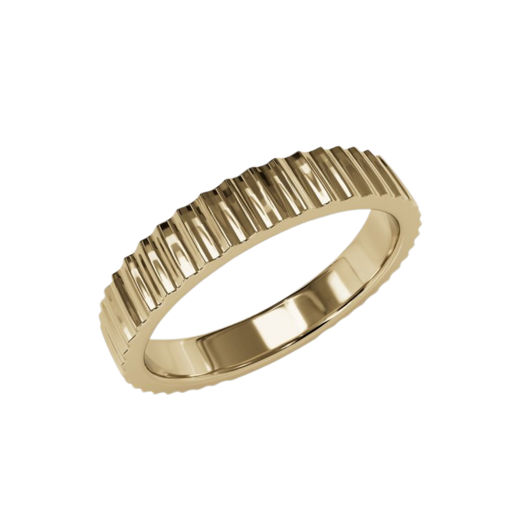 This Fluted Gold Band offers a timeless design with subtle textured detailing that adds a unique touch to your everyday style. Crafted for comfort and durability, it’s perfect for those seeking a classic yet distinctive accessory to wear daily or mark a special occasion. Its elegant simplicity makes it a versatile piece that complements any outfit with ease.