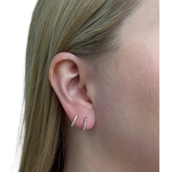 Elevate your everyday style with our Cosmo Mini Bow Earrings, a charming addition to our Cosmopolitan collection. These delicate studs feature a sophisticated mix of baguette and round-cut diamonds that...