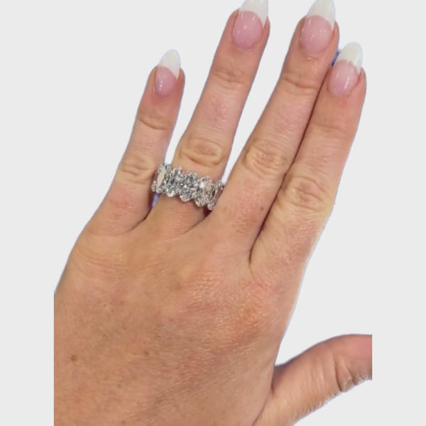 Celebrate lasting love with the Lab-Grown Moval Full Eternity Band, featuring a unique blend of marquise and oval shapes known as moval. This continuous circle of lab-grown stones offers exceptional sparkle and an elegant silhouette, symbolizing your enduring commitment.