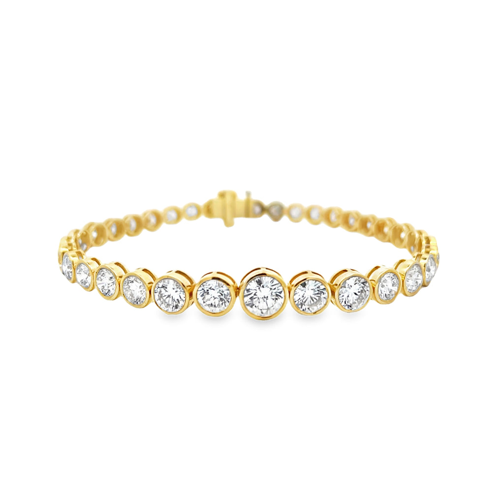 Experience the beauty and sustainability of the Lab-Grown Graduated Round Bezel Tennis Bracelet. Each stone is carefully set in a bezel setting that enhances durability and comfort, while the graduated design adds a graceful flow to your wrist. This bracelet is a thoughtful choice for those who value both style and ethical jewelry.