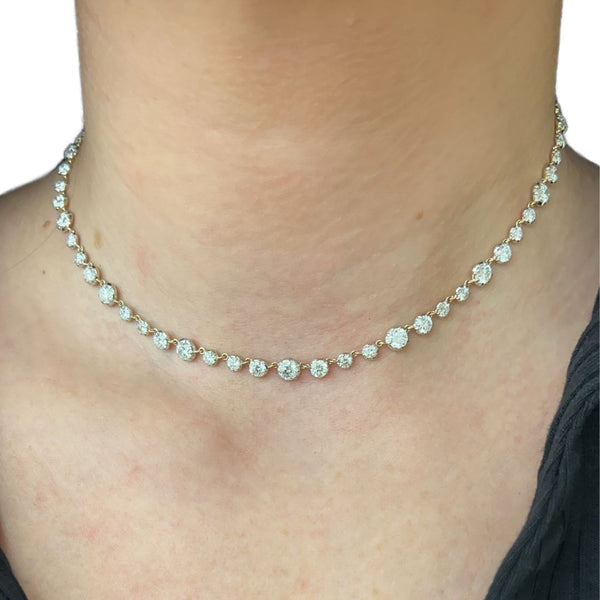 Upgrade your jewelry collection with our stunning Lab-Grown 10 CTW Tennis Necklace. Made with lab-grown diamonds, this necklace offers the same beauty and quality of mined diamonds, without the ethical...